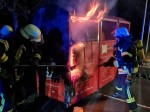 Kaum damit fertig, ging kurz nach 6 Uhr ein erneuter Alarm ein: Diesmal brannten zwei Kleidercontainer an der Wiedstraße nahe der B256. Auch diese Container musste die Feuerwehr gewaltsam öffnen, um die Brandnester ablöschen zu können.