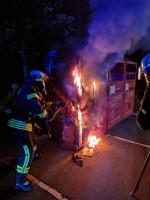 Feuerwehr muss brennende Kleidercontainer löschen
