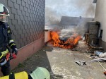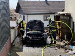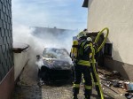 Malberg. Gegen 11.20 Uhr gingen die Alarmmelder der Feuerwehren in der VG Betzdorf-Gebhardshaim los: Brennender PKW auf einem Privatgrundstück. Kräfte der Löschzüge Rosenheim und Steinebach rückten sofort aus und fanden das Auto in der Malberger Hauptstraße im Vollbrand vor. Es bestand höchste Gefahr, dass die Flammen auf das Dach eines Hauses und einen Holzstapel auf der gegenüberliegenden Seite überspringen könnten. Aber mit drei Trupps unter Atemschutz gelang es den Wehren, das Feuer rasch abzulöschen und den Schaden am Nachbarhaus gering zu halten.