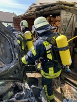 Das Auto war in Brand geraten, als die 27-jährige Besitzerin das derzeit abgemeldete Fahrzeug auf dem Privatgrundstück bewegt hatte. Sie kam nur wenige Meter weit, denn direkt nach dem Start drangen Rauchschwaden aus dem Motorraum. Der Frau blieb unverletzt, an dem PKW entstand jedoch Totalschaden. Als Ursache für den Brand wird ein technischer Defekt am Anlasser angenommen.