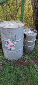 Eines der Ölfässer fasst 208 Liter, das kleinere fasst 60 Liter. Beide Fässer waren allerdings leer und enthielten keine Betriebsstoffe mehr.