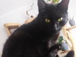 Vala ist komplett schwarz und hat grün-gelbe Augen, aber ansonsten keine signifikanten Merkmale. Sie ist kastriert, aber leider nicht gechipt.