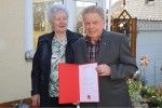 Daher suchte der Vorsitzende des SPD-Ortsvereins die Jubilare mit gebotenem Corona-Abstand zu Hause auf. Waldemar Roos wurde im Beisein seiner Ehefrau Edith für seine 60-jährige Mitgliedschaft bei den Sozialdemokraten geehrt.