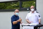 Auch aus den Nachbarkreisen waren Feuerwehrleute nach Oberlahr gekommen. Dies, so sagen alle Führungskräfte, zeige, wie eng die Zusammenarbeit geworden ist. "Wir unterstützen uns bei vielen Einsätzen", so Stürz, "dann natürlich auch beim Schutz der Einsatzkräfte." Die Impfbereitschaft in den Feuerwehren sei sehr hoch und viele haben auf diese Möglichkeit gewartet. Natürlich", so der Wehrleiter, "haben auch wir Mitglieder, die aus unterschiedlichen Gründen nicht geimpft werden können." Als bedauernswert sehen es die Führungskräfte an, dass die Jugendfeuerwehren noch nicht geimpft werden können. Wenn sich die Möglichkeit ergibt, werde es sicher ein ähnliches Verfahren für den Nachwuchs geben, sind sich die Feuerwehrleute einig.