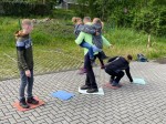 Auch Familie Janzen stellte sich der Schnitzeljagd. Gemeinsam meisterten sie auf beeindruckende Art und Weise die Aufgaben, wie zum Beispiel „Erreiche das sichere Ufer“. Die Herausforderung bestand darin, eine vorgegebene Strecke mithilfe von Teppichen so zu gestalten, dass „das andere Ufer“ ohne Bodenberührung erreicht wird. Da waren Teamwork und Kreativität gefragt.