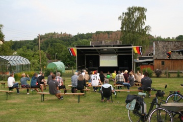 Am Vorabend des ersten Spieltages der deutschen Nationalmannschaft waren die Vorarbeiten beendet. Am Spieltag selbst wurde 30 Minuten vor Anpfiff der Zugang gewährt. In diesem Zusammenhang sei auch erwähnt, dass diese Veranstaltung nur für die Bürger der Gemeinde Michelbach vorgesehen war. Es bestanden keine Parkmöglichkeiten, so dass alle Besuchter entweder zu Fuß oder mit dem Fahrrad kamen.
