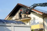 Nachdem dies bekannt war, konzentrierten sich die Maßnahmen auf die Bekämpfung des Brandes. Dies stellte sich als sehr schwierig dar. Das gesamte Dachgeschoss war mit einer Verkleidung versehen, die mühsam entfernt werden musste. Das Feuer fraß sich zwischen Dachziegeln und Verkleidung immer weiter. Die Verkleidung sowie Teile der Dachziegel mussten entfernt werden - bei den derzeit herrschenden Temperaturen ein kräftezehrendes und zeitaufwendiges Unterfangen. Die Trupps unter Atemschutz mussten immer wieder abgelöst werden. Um genügend Geräteträger vor Ort zu haben, wurde der Löschzug Berod ebenfalls zur Einsatzstelle beordert.