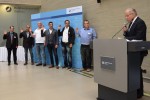 Höhepunkt der Veranstaltung war die Vereidigung sechs neuer Sachverständiger aus fünf Gewerken: Klempner- und Dachdeckermeister Reiner Bachenberg (Puderbach; LK Neuwied), Dachdeckermeister Christian Gilles (Rüber; LK Mayen-Koblenz), Maurer- und Betonbauermeister Marcel Groß (Spessart; LK Ahrweiler), Orthopädieschuhmachermeister David Haßler (Weiskirchen; LK Merzig-Wadern), Dachdeckermeister Lars Hennig (Emmelshausen, Rhein-Hunsrück-Kreis) und Kälteanlagenbauermeister Torsten March (Bullay; LK Cochem-Zell). Nach dem feierlichen Eid übernahmen sie die Insignien der Sachverständigen: Ernennungsurkunde, Ausweis und Rundstempel mit Siegel.