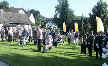 An dem Gottesdienst in Selbach hatte natürlich auch die örtliche Schützenbruderschaft St. Hubertus teilgenommen. Direkt anschließend begab man sich zum Ehrenmal, wo Brudermeister Hubert Kemper einen Kranz zum Gedenken an die