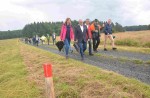 Es war dann an Generalsekretär Bonde, die Freigabe vorzunehmen: Symbolisch schraubte er ein Betretenverbotenschild ab. Der Tross machte sich von dort aus auch gleich auf den mit den Pflöcken abgegrenzten Weg. Es wurde an diesem Tag bis zum „Derscher Geschwämm“ erkundet. Es handelt sich um eines der wenigen Hochmoore in der Bundesrepublik. Bundesforstrevierleiter Christof Hast machte hier einige Ausführungen. Der Rückweg wurde dann von erneutem Dauerregen begleitet.