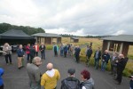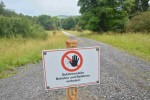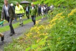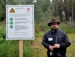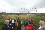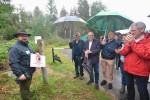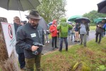 Es war dann an Generalsekretär Bonde, die Freigabe vorzunehmen: Symbolisch schraubte er ein Betretenverbotenschild ab. Der Tross machte sich von dort aus auch gleich auf den mit den Pflöcken abgegrenzten Weg. Es wurde an diesem Tag bis zum „Derscher Geschwämm“ erkundet. Es handelt sich um eines der wenigen Hochmoore in der Bundesrepublik. Bundesforstrevierleiter Christof Hast machte hier einige Ausführungen. Der Rückweg wurde dann von erneutem Dauerregen begleitet.