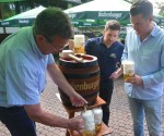 Die Biergartensaison an der Stadthalle Betzdorf ist mit einem Fassanstich eröffnet worden: Das Stadtoberhaupt Benjamin Geldsetzer schlug das obligatorisch erste Fass an. Das klappte auf Anhieb, und der Himmel hatte da auch wieder seine Schleusen geschlossen.