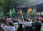 Wenngleich die Musikerinnen und Musiker hastig alles wegräumen mussten, so waren alle froh, die verstrichenen zwei Stunden an diesem Abend vor und für ein Publikum gespielt zu haben. Wie auch bei einem Auftritt im Vorjahr im Biergarten an der Stadthalle. Wer die Atmosphäre unter den Eichen bei einem Gläschen Wein oder eine Glas Gerstensaft oder bei einem leckeren Flammkuchen genießen möchte, der findet immer donnerstags bis freitags ab 18 Uhr den Biergarten an der Stadthalle geöffnet. (tt)