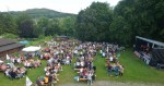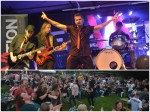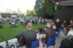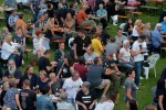 Sängerin Eva Weber, die Sänger Christoph Euteneuer und Kevin Wallimann und ihre Musikerkollegen an den Instrumenten bot sich ein beachtliches Bild auf die vollbesetzten Tische. Nämlich als sie auf der Bühne auf ihren Stühlen saßen. Stühle? Ja, die Coverband hatte es sich auf der Bühne bequem gemacht. Das kennt man so nicht von Elevation, wenn ein Open-Air-Konzert ansteht. Das löste gleich Eva Weber auf, die sich freute, dass „ihr alle gekommen seid“: „Wir unterhalten euch erstmal ruhig, wir wollen erstmal ankommen.“ Sie versprach aber auch, dass es „gleich noch etwas auf die Rübe“ geben wird.
