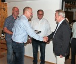 Nun konnte man endlich zu den Jubilarehrungen schreiten, eine Aufgabe, die Manfred Hain vom Kreischorverband Altenkirchen natürlich sehr gern übernahm. Seit stolzen 65 Jahren sind Klaus Reinery, Bertram Weitershagen und Ludwig Weitz aktive Sänger, Wilfried Reifenrath kann immerhin noch 60 Jahre vorweisen sowie Peter Schwartz und Clemens Becher je 25 Jahre. Hain übergab ihnen entsprechende Urkunden, umrahmt von starkem Beifall.