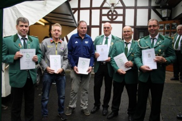 Am Nachmittag trafen noch einige Mitglieder des Blasorchester Mehrbachtal ein, die den Luftgewehrschießstand ab und zu als Probe-Raum nutzen. Außerdem fanden sich noch der Sportkreisvorsitzende Dr. Michael Weber und der Vorsitzende des Schützenbezirks 13 Karl Heinz Pitton im Schützenhaus ein um noch Ehrungen des Sportbund Rheinland durchzuführen.