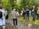 Wissen. Zu einer fachkundigen Exkursion mit dem Thema „Die Befreiung Wissens“ hatte die Kreisvolkshochschule zusammen mit Bürgermeister Berno Neuhoff eingeladen. Rund 30 Interessierte nahmen am Samstag, dem 18. September, an diesem rund vierstündigen Streifzug in die letzten Tage und Schauplätze des Zweiten Weltkrieges im Wisserland teil. Ralf Anton Schäfer aus Betzdorf begleitete die Wanderung sachkundig, erläuterte die Einzelheiten während der Exkursion und stieß dabei auf wissbegierige Zuhörer.