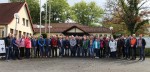 Treffpunkt für die Wanderung war das gemeindeeigene Hotel Sonnenhof. Von hier aus führte Weyerbuschs Ortsbürgermeister Dietmar Winhold die Gruppe durch den Ort zu den Sportanlagen der Verbandsgemeinde in unmittelbarer Nähe zu Grundschule und Kindertagesstätte. Hier berichtete Bürgermeister Jüngerich über den mittlerweile abgeschlossenen Neubau der Schulsporthalle.