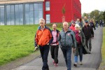 Anschließend begrüßte das Ehepaar Höhner die Wanderer auf dem Gelände der Spedition Höhner. Seniorchef Erhardt Höhner erklärte, dass der 1963 gegründete Familienbetrieb aktuell 75 Mitarbeiter und 45 eigene Fahrzeuge umfasst. Die Hauptbetätigungsfelder der Spedition sind innerdeutsche Teil- und Komplettladungsverkehre mit dem Leistungsschwerpunkt auf Routen zwischen Rheinland und Süddeutschland. Das Unternehmen ist hauptsächlich im Drogeriebereich tätig; rund 50 dm-Filialen werden regelmäßig bedient. Neben der Lagerhalle konnte die Wandergruppe die Büroräume besichtigen und sich in der Disposition die Abläufe erläutern lassen.