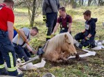 Nach dem Abschluss der Einsatzmaßnahmen, für die 35 Einsatzkräfte rund 90 Minuten vor Ort waren, wurde das Pony an die glückliche Besitzerin übergeben. (PM)