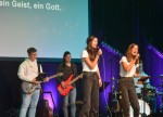 Zwischen einen großen Kreuz auf der einen Seite der Bühne und einer alten Druckerpresse aus Holz im Stil von Johannes Gutenberg hatte die Band „Extrakt“ aus Niederdresselndorf den Abend nach einer Lichtshow musikalisch eröffnet. Vor einigen Jahren war die Band mit christlichem Pop bereits in der evangelischen Kreuzkirche bei dem besonderen Gottesdienst am Reformationstag mit von der Partie.