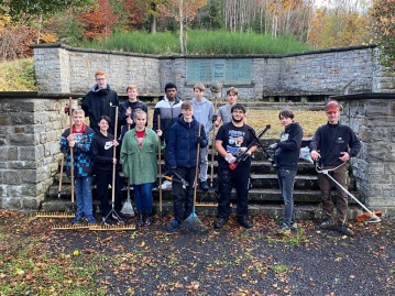 Daaden. Mit Heckenscheren, Rechen, Schubkarren und Freischneider ausgerüstet, setzten die Jugendlichen aus den Klassen 9 und 10 ihr Vorhaben der „Denkmalpflege zum Volkstrauertag“ um. Zuvor hatte Elias Schlosser die Idee einer „Freischneide-Aktion“ vor dem Volkstrauertag in einer der Sitzungen der Arbeitsgruppe geäußert. Diese fiel bei den Mitgliedern, den AG-Leitern Simon Imhäuser und Lars Limbach, sowie Stadtbürgermeister Walter Strunk auf fruchtbaren Boden.