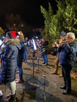 Fast vier Monate Probenvorbereitungen einschließlich Wochenende und allem was dazu gehört, sollten auf jeden Fall nicht ganz umsonst gewesen sein, weshalb beim Musikverein die Idee reifte, stattdessen vor der katholischen Kirche St. Josef in Dermbach ein Platzkonzert zu veranstalten. Die Menschen standen überall verteilt, auf dem Kirchplatz, den Treppen und am Straßenrand und wie in Corona-Zeiten erforderlich, in entsprechendem Abstand. Die Einwohner unterhalb der Kirche kamen in ihrem Zuhause ebenfalls in den Genuss des hochkarätigen, einstündigen Konzerts, die musikalischen Darbietungen schallten in den Ort hinab. Dank den Lichtersternen an der Kirche, den geschmückten Häusern und der klirrenden Kälte, fehlten eigentlich nur noch die Schneeflocken um eine zauberhafte Weihnachtskulisse zu zaubern.