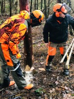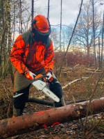 Dazu trafen sich unter Einhaltung der geltenden Corona-Vorschriften insgesamt neun Teilnehmende aus dem gesamten Kreisgebiet mit eigener Ausrüstung und Motorsäge in Fensdorf.