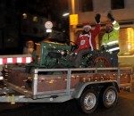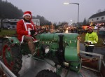 Niederfischbach/Harbach. "Leise rieselt der Schnee" – pardon – leise rieselt der Schaum. Und zwar auf einem Kleinlaster, der dem Pulk an Treckern vorausfuhr. Eine Schaumkanone pustete die weißen Flocken in die Luft, die sich dick auf einem mit Lichterketten angedeuteten Weihnachtsbaum absetzten. Alles war weiß, und der mit Luft in Form gehaltene Schneemann auf der Pritsche sowieso. Die weiße Pracht, die Christian Becker aus Harbach mit seiner Schaumkanone erzeugte, reichte aber nicht für einen Schlittentour. Vielleicht war das ja der Grund, warum der Nikolaus nicht mit Rentieren und auf Kufen daherkam, sondern es sich weiter hinten auf einem Traktor bequem gemacht hatte. So bewegte sich der Nikolaus mitten in der Lichterfahrt vorwärts. Wobei "bewegen" an der Stelle relativ ist. Der alte "Holder", der schon 70 Jahre auf dem Buckel hat und auf dem Jonny Köpke im roten Mantel saß, war auf einem Anhänger festgezurrt. Letzterer wurde dann samt Holder und Nikolaus von einem wuchtigen Trecker gezogen. Und auch der aus Tannenzweigen gefertigte Wichtelmann mit weißem Bart auf einem anderen Traktor war ein Hingucker.
