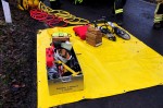 Die Feuerwehren unterbauten das Fahrzeug und begannen dann mit der Rettung der eingeklemmten Personen. Hierbei war technisches Gerät erforderlich. Es wurde die Frontscheibe entfernt, um zunächst einen Zugang für den Rettungsdienst zu schaffen. Nach einer kurzen ersten Untersuchung konnten die beiden Betroffenen durch die Feuerwehren gerettet und dem Rettungsdienst übergeben werden. Eine Person hatte schwerste Verletzungen erlitten. Der schwerverletzte Insasse wurde zunächst im Rettungswagen für den Transport vorbereitet. Später brachte ein Hubschrauber den schwer Verletzten in die Uni-Klinik nach Bonn.