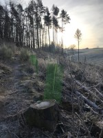 Und die Pfähle werden dann im Rahmen der Aufforstung 20 bis 50 Bäume gepflanzt. Es ist beabsichtigt, die Pflanzung mit den Forstwirt-Auszubildenden des Forstamtes Altenkirchen durchzuführen.
