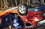 Unfall auf der B256 bei Eichen: Ein Auto war am Montagabend (27. Dezember) von der Fahrbahn abgekommen, hatte sich überschlagen und war auf dem Dach liegengeblieben. Ersthelfer konnten den schwerverletzten Fahrer schon vor dem Eintreffen der Feuerwehr und des Rettungsdienstes aus dem Autowrack befreien.