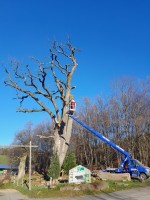 Für den Rückschnitt, der nicht zuletzt aufgrund der Verkehrssicherungspflicht erfolgte, waren mehrere Arbeiter zwei Tage lang mit Hubsteiger und Motorsägen im Einsatz. Auch in der Zukunft muss der Stamm regelmäßig kontrolliert werden, was zusammen mit den bereits erfolgten Arbeiten mit hohen Kosten verbunden ist. Noch möglichst viele Jahre soll die alte Eiche nun in ihrem jetzigen Zustand erhalten bleiben. Solange bis die Natur den mächtigen Stamm vollständig zersetzt hat. (KathaBe)