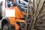 Der LKW bohrte sich rund hundert Meter hinter der Unfallstelle in das Unterholz. Der Fahrer erlitt nach Informationen der Rettungskräfte einen Schock, blieb ansonsten unverletzt. Der schwerverletzte Fahrer des PKW wurde zunächst im Rettungswagen untersucht und transportfähig gemacht. Danach wurde er mit dem Hubschrauber in eine Klinik der Maximalversorgung geflogen.