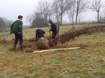 Dafür mussten einige Bäume gefällt werden, um den Bolzplatz, der dem Kunstrasenplatz weichen musste, eben dorthin zu verlegen. Der Verpflichtung, dafür Ersatzpflanzungen vorzunehmen als eine damalige Auflage zur Genehmigung des Kunstrasenprojekts, kam der TuS 09 nun im Januar nach. 600 Pflanzen, vorwiegend Laubbäume, wurden von 20 fleißigen Helfern des TuS 09 auf einer Gemeindefläche nördlich des Friedhofs gesetzt.