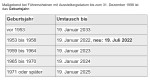 Für die erste Staffel (Geburtsjahrgänge 1953 bis 1958) lief der Umtauschtermin ursprünglich am 19. Januar ab. Doch es wurde eine Fristverlängerung bis zum 19. Juli beschlossen. Dazu haben sich die Innenminister der Länder kurzfristig entschlossen. Dies nicht zuletzt aufgrund der aktuellen pandemiebedingten Belastungen.