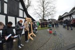 Gedenken sei ein Akt der Vergangenheit, Gegenwart und Zukunft, so die Friedens-AG. Frieden zu halten, das sei ein ständiger Prozess, und täglich müsse man sich um ein friedliches Miteinander bemühen, betrachteten die Schüler die Gegenwart, und ermutigten: "Lasst uns die Zukunft gestalten." Man sollte Bündnisse für einen respektvollen Umgang und eine friedvolle Konfliktbewältigung schaffen. Man dürfe sich nicht einschüchtern zu lassen und müsse mutig sein: "Zeigt den Hetzern und Faschisten Grenzen, bis hierher und nicht weiter." Als eine Kernbotschaft schälten sie heraus: "Menschen brauchen Gedenken, Gedenken braucht Menschen." Ein jüdisches Friedensgebet sprachen Provinzial Pater Egon Färber und Bruder Hubertus Büdenbender aus dem Kloster der Heiligen Familie in Bruche, und Pianist Dominik Stangier war auch hier am Klavier zu hören. Berthold Kostian sang das Lied "Allen Menschen Frieden".