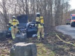 Autobrand: Rauch lenkt Fahrer in Mudersbach ab – Kollision mit Stein