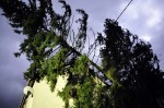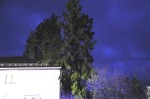 Güllesheim. Die Alarmmelder schlugen gegen 17.40 Uhr an. Über die Feuerwehreinsatzzentrale (FEZ) wurden auch ein Forstwirt und der Stromversorger zur Einsatzstelle bestellt. Die Einsatzstelle war den Feuerwehrleuten bestens bekannt. „Wir mussten hier, vor rund einem halben Jahr, schon einmal tätig werden. Dabei wurde darauf hingewiesen, dass die jetzt betroffenen Bäume hätten entfernt werden müssen“, so Einsatzleiter Thomas Meffert. Während der Erkundung der Einsatzstelle gefährdete eine starke Tanne zunächst das Haus. Im weiteren Verlauf schlug dieser Baum dann auf das Dach. Die dort verlaufende Stromleitung bremste den Aufschlag.