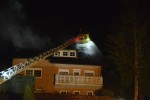 Sowohl im Innenangriff mit Atemschutztrupps als auch von der Drehleiter aus im Außenangriff wurde zunächst gelöscht. Der Innenangriff musste dann jedoch zunächst wieder eingestellt werden. Das Dach war durchgebrannt, ein Dachreiter drohte herunter zu fallen, gab Kappes weiter. Die Stromleitung führte auf das Dach eines Nachbarhauses. Es sei zunächst gemeldet worden, dass sich dort Personen aufhalten könnten, was sich jedoch nicht bestätigt habe, berichtetet Jana Baldus, Pressesprecherin der Verbandsgemeindewehr Kirchen. Gegen 20.25 Uhr waren die Wehren alarmiert worden. Bei den Nachlöscharbeiten wurde nach Glutnestern gesucht. Es kam dabei auch der Einreißhaken zum Einsatz. Kurz vor Mitternacht waren alle Wehren wieder abgerückt. Das Equipment blieb noch vor Ort, denn es stand später noch eine Kontrollfahrt auf dem Plan. Wenn alles soweit in Ordnung sei, wollte man alles zurückbauen, berichtete Peter, seines Zeichens Ortsbürgermeister in Mudersbach. Während der Nachlöscharbeiten hatte starker Regen eingesetzt, der in Schnee überging.