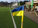 Nach dem Einlaufen der Mannschaften versammelten sich die Teams an der Mittellinie, bildeten eine gemeinsame Gruppe und hielten viele Antikriegsplakate in die Hölle. “Stand by Ukraine, Stop the war, Stoppt den Krieg“, war auf den Plakaten zu lesen, die in den ukrainischen Nationalfarben Gelb und Blau leuchteten. Die überraschende Geste wurde von den anwesenden Zuschauern mit viel Beifall bedacht, die damit auch ihre Sympathien für die Ukraine bekundeten. Sogar die Eckfahnen waren in Gelb und Blau ausgestattet.