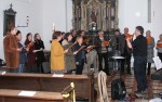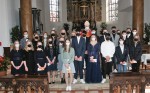 Darüber hinaus nahm sich Ansgar Puff noch die Zeit an jeden einzelnen einen freundlichen Satz zu richten. Fünf der soeben gefirmten jungen Leute trugen dann die Fürbitten vor. Als musikalische Umrahmung des Festgottesdienstes hatte man den Jugendchor "Chorus live", diesmal verstärkt um einige Sänger von "Joung Cäcilia" aus Hamm gewinnen könnten. Unter der Leitung von Hans-Georg Rieth stimmten die gut 20 Vokalisten sowie Lena Wagner (Flöte) und Sarah Simon (Klavier) unter anderem "Veni Sancte Spiritu" oder "Kommt bringet Ehre Dank und Ruhm" an. Das Stück "Give me Love" hatte man aus aktuellem Anlass um die Zeile "Give me Peace" erweitert.