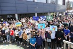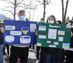 Unermessliches Leid, Tod, Vertreiben und Zerstörung richte der Krieg bei den Menschen praktisch vor unserer Haustür an. Die Tatsache, dass inzwischen in Russland das Wort Krieg und jegliche Kritik daran verboten sei, das verweise deutlich darauf, dass es kritische Stimmen im eigenen Land gäbe. So absurd der Versuch sei, einen Angriffskrieg durch Sprech- und Denkverbote in einem positiven Licht erscheinen zu lassen, so bekannt sei diese Technik, wo Opfer zu Tätern, Angriff zur Verteidigung, Menschen zu Feinden umdefiniert werden, um Gräueltaten zu rechtfertigen für die es keine Rechtfertigung gebe. "Daher ist unsere Solidarität hier und heute mit dem weltweiten Protest gegen Krieg an sich und insbesondere gegen den Krieg in der Ukraine, ein wichtiges Zeichen des Einstehens für unser aller Freiheit", so der Schulleiter abschließend.