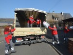 In Dauersberg arbeiteten die Helfer Hand in Hand, um die Lastwagen zu beladen. Auch in den Gassen der Ortschaften war Teamarbeit angesagt. An Stellenmit hoher Zahl an Säcken wurde eine Kette gebildet, um rasch die Fahrzeuge zu füllen.