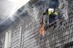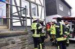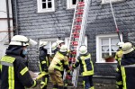 Der Brand stellte die Einsatzkräfte vor große Herausforderungen, da es sich hier um ein altes Fachwerkgebäude handelt. Das Feuer konnte sich bis in das Dachgeschoss ausbreiten. Hier wurden über die Drehleiter aus Wissen Löschmaßnahmen mit dem Wenderohr vorgenommen. Unterstützt wurden diese Arbeiten mit der Drehleiter aus Hamm. Mit Einreißhaken wurden die Dachhaut und später die Verschieferung der Fassade entfernt. Nach den ersten Löschmaßnahmen musste in allen Räumen und in der Außenverkleidung nach Brandnestern und Glutresten gesucht werden. Hierbei kam auch die Wärmebildkamera zum Einsatz. Der Gerätewagen Atemschutz sorgte für den Nachschub an Atemschutzgeräten.