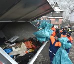 Eine gute Zahl an Helferinnen und Helfern war dennoch morgens am Gerätehaus des Löschzuges Betzdorf gestartet, um das einzusammeln, was nicht unter dem Schnee verborgen lag. Die Jugendfeuerwehr Betzdorf hatte sich das Rainchen vorgenommen. 18 Mädchen und Jungen waren tatkräftig mit von der Partie. Und so landete manche Verpackung und viele Flaschenverschlüsse in den blauen Säcken. Diese wurden schließlich in den beiden am städtischen Bauhof Betzdorf abgestellten Containern entsorgt. "Der Sieben-Kubikmeter-Container ist schon voll", sagte Julia Wisser mittags, als sich die Aktiven am Feuerwehrhaus trafen. Die Citymanagerin berichtete, dass in dem Container unter anderem Müll und Unrat liegt, den die Grundschulen Christophorus in Bruche, Martin-Luther in Betzdorf und Maximilian-Kolbe in Scheuerfeld vor dem Wochenende in ihren Gebieten eingesammelt hatten. Es ist eine gute Gepflogenheit, dass wochentags die Schulen bei der Aktion mitmachen. Auch die blauen Säcke, die samstags zuvor in Dauersberg im Rahmen der Aktion gefüllt wurden, wanderten in die Container, berichtete Wisser.