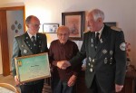 Der Besuch von befreundeten Bruderschaften oder Schützenvereinen hat ihm immer Freude gemacht. Heute, mit 96 Jahren, kann Heinz Wagner auf ein erfülltes Leben zurückblicken und ist, nebenbei bemerkt, der älteste Selbacher Bürger. Hubert Kemper, übrigens der direkte Nachfolger Wagners im Amt des Brudermeisters, und Klaus Benterbusch übermittelten natürlich auch die besten Grüße des Vorstands und aller Mitglieder: "Dir lieber Heinz, hat unsere Bruderschaft viel zu verdanken gerade auch im Sinne der Zielsetzung 'Für Glaube, Sitte, Heimat', so wie es die Urkunde ausweist."