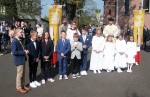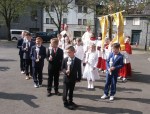 Auf die sonst übliche Prozession von der Grundschule zu dem Gotteshaus musste leider verzichtet werden. Stattdessen zogen die Erstkommunikanten in Begleitung der Messdiener und Geistlichen über den Kirchplatz bevor die feierliche Messe begann. Anschließend wurden sie von ihren Eltern und Verwandten mit Gratulationen in Empfang genommen. Zu Ehren der Hauptpersonen hatte sich auch die Stadt- und Feuerwehrkapelle Wissen eingefunden und stimmte einige schöne Stücke an. (bt)