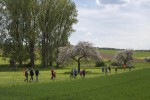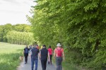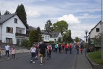 Nach einem kurzen Stopp konnte man sich nach links auf die große Runde begeben, die auf weiteren sieben Kilometern ins Tal des Iserbachs und an der Thalhauser Mühle vorbeiführt. Angesichts des warmen Wetters wählte die Mehrheit der Wanderer die kurze Strecke, die nun auf ebenem Weg durch das Industriegebiet „Larsheck“ zurück zum Dorf führte. Nach einer letztmaligen Straßenüberquerung kam man rasch an den Burplatz im Ortskern von Kleinmaischeid zurück.