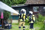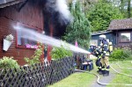 Rettersen. Die freiwilligen Feuerwehren wurden am Donnerstag, den 2. Juni, gegen 11.10 Uhr über Sirene und die Funkmeldeempfänger alarmiert. Beim Eintreffen der ersten Kräfte stand das Gebäude in der Straße "In der Au" bereits im Vollbrand. Eine zusätzliche Gefahr ging von im Haus befindlichen Gasflaschen aus. Diese, so der Einsatzleiter, hatten abgeblasen und konnten kontrolliert ausbrennen, bis kein Gas mehr vorhanden war. Die Gasflaschen wurden durch die Feuerwehr ständig gekühlt.